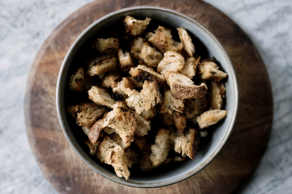 The key to really good, crunchy croutons is to use sourdough bread that's a day or two old and a…