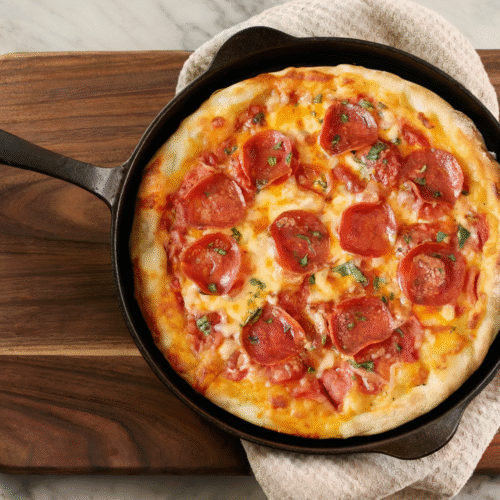 Top the pizzas as desired, then place the skillets in the hot oven.