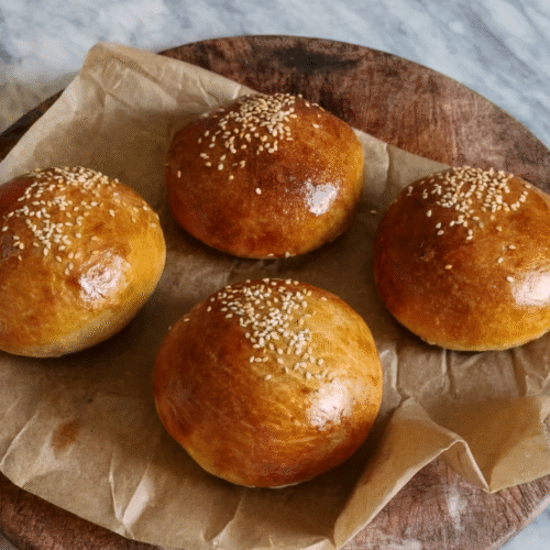 If you’re using an egg wash, whisk the egg and milk together. Brush a thin layer over the tops of the proofed buns and sprinkle with sesame seeds if you like.