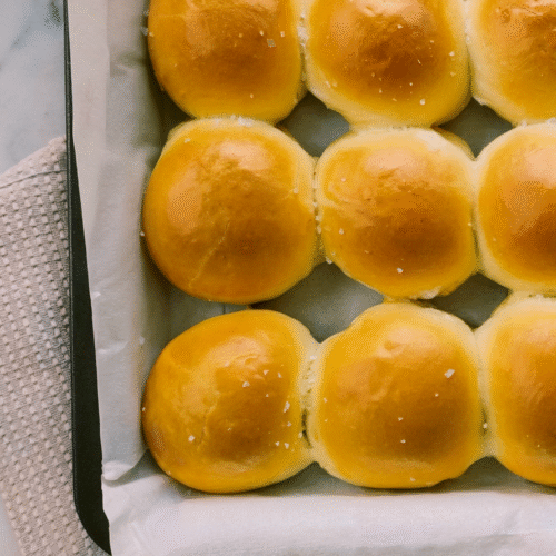 - Brush hot rolls with melted butter, sprinkle with flaky sea salt.