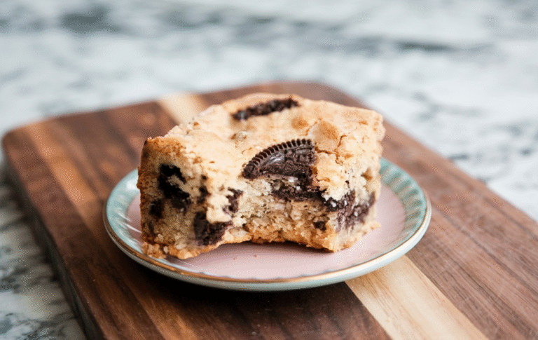 - Spread batter in parchment-lined 8×8 pan, top with reserved Oreos.
