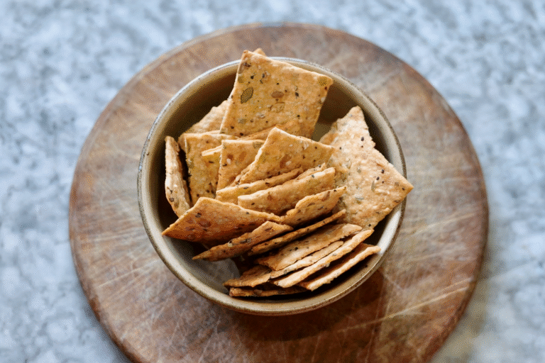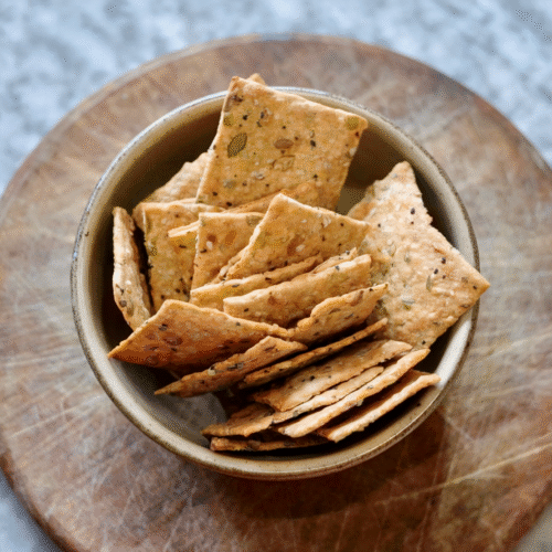 Bake for ~30-35 minutes, rotating the pan halfway through. The crackers are done when they are lightly golden and completely set. They will get crispier as they cool.