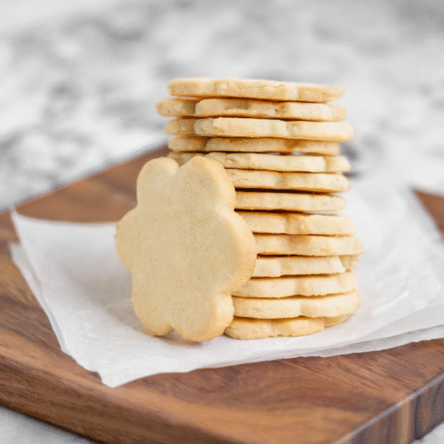 If you want to be extra sure the cookies keep their shape, you can pop the whole baking sheet with the cut-out cookies into the freezer for 10-15 minutes before baking.